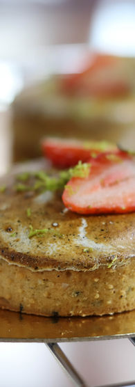 Poitrine de cochon laquée au miel et citron, gâteau de topinambour .